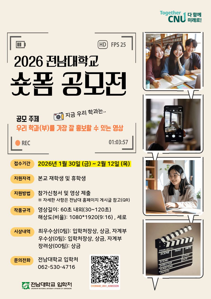 1. 공모명 : 2026 전남대학교 학과 홍보 숏폼 공모전